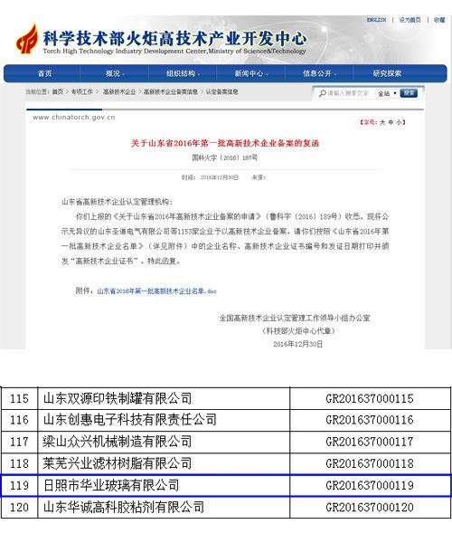 根據(jù)全國高新技術(shù)企業(yè)認(rèn)定管理工作領(lǐng)導(dǎo)小組辦公室《關(guān)于山東省2016年第一批高新技術(shù)企業(yè)備案的復(fù)函》,我公司被認(rèn)定為“國家級高新技術(shù)企業(yè)”。